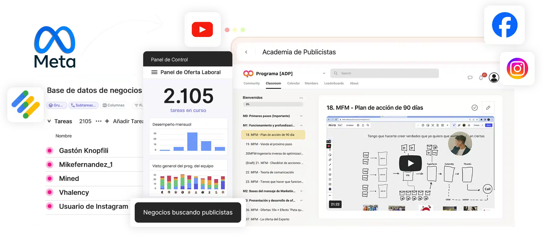 Nos dedicamos a capacitar a personas sin experiencia, brindándoles una formación integral en Publicidad Digital. Pero no nos detenemos ahí. También te conseguimos tus primeros clientes.